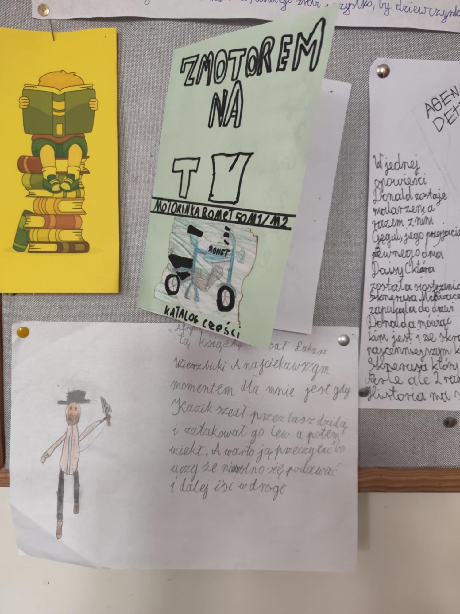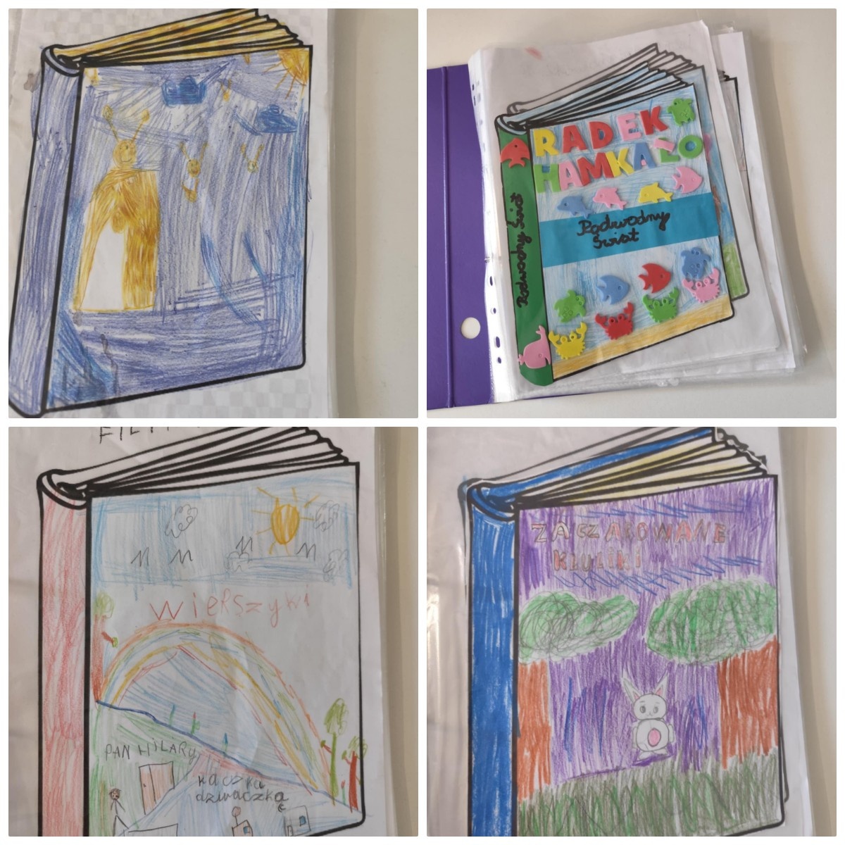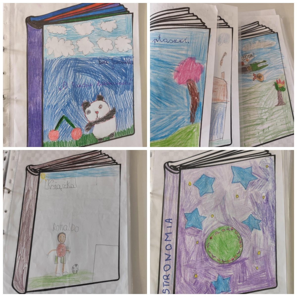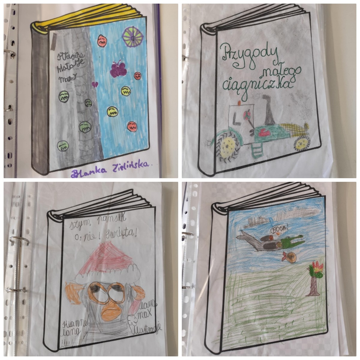 Na przygotowanej wystawie można podziwiać różnorodne prace – od kolorowych, pełnych fantazji rysunków, po starannie opracowane pomysły na tytuły i ilustracje. Uczniowie z zaangażowaniem wcielili się w rolę ilustratorów i projektantów, a ich dzieła stały się prawdziwą ozdobą szkolnej biblioteki.