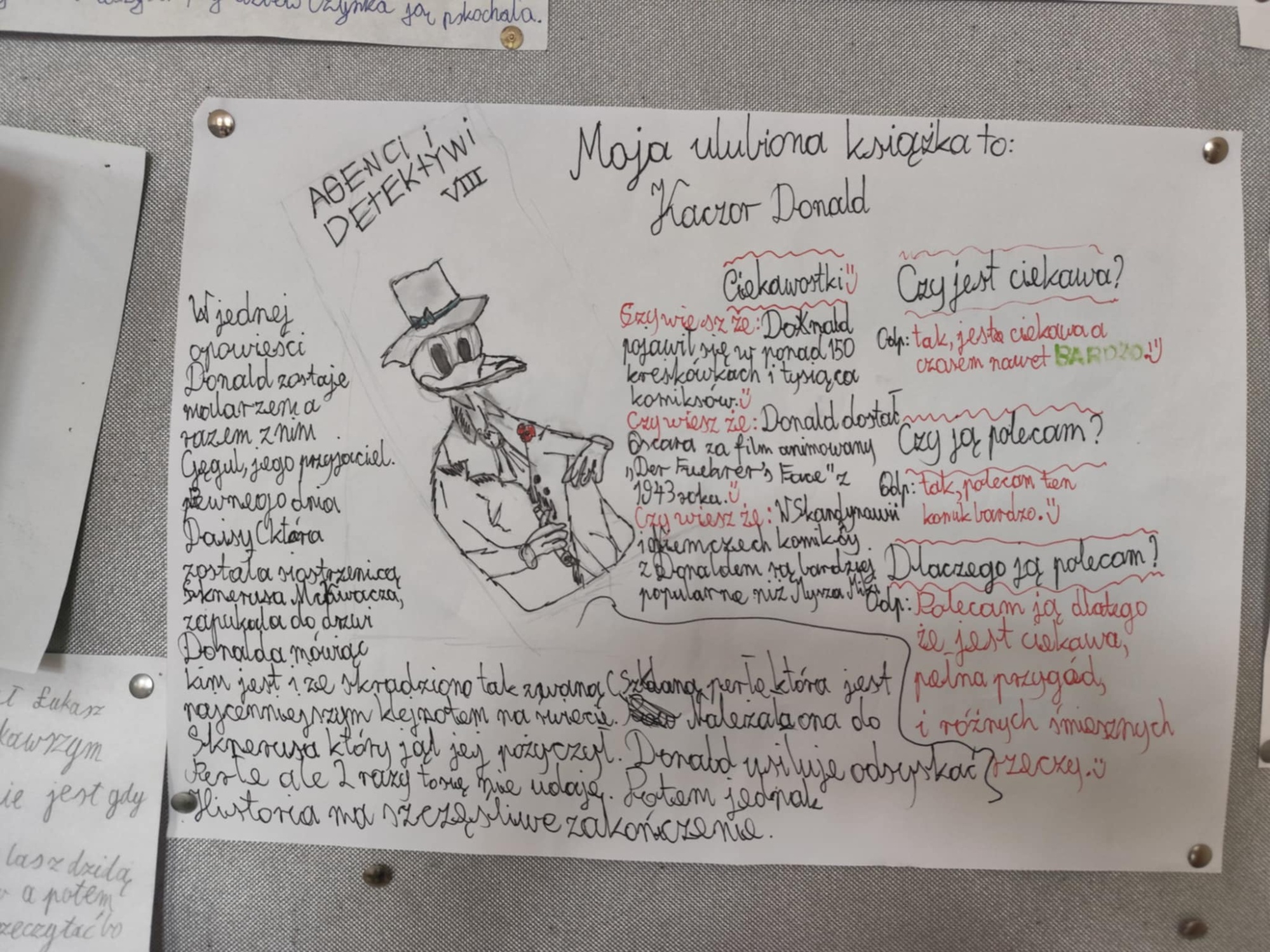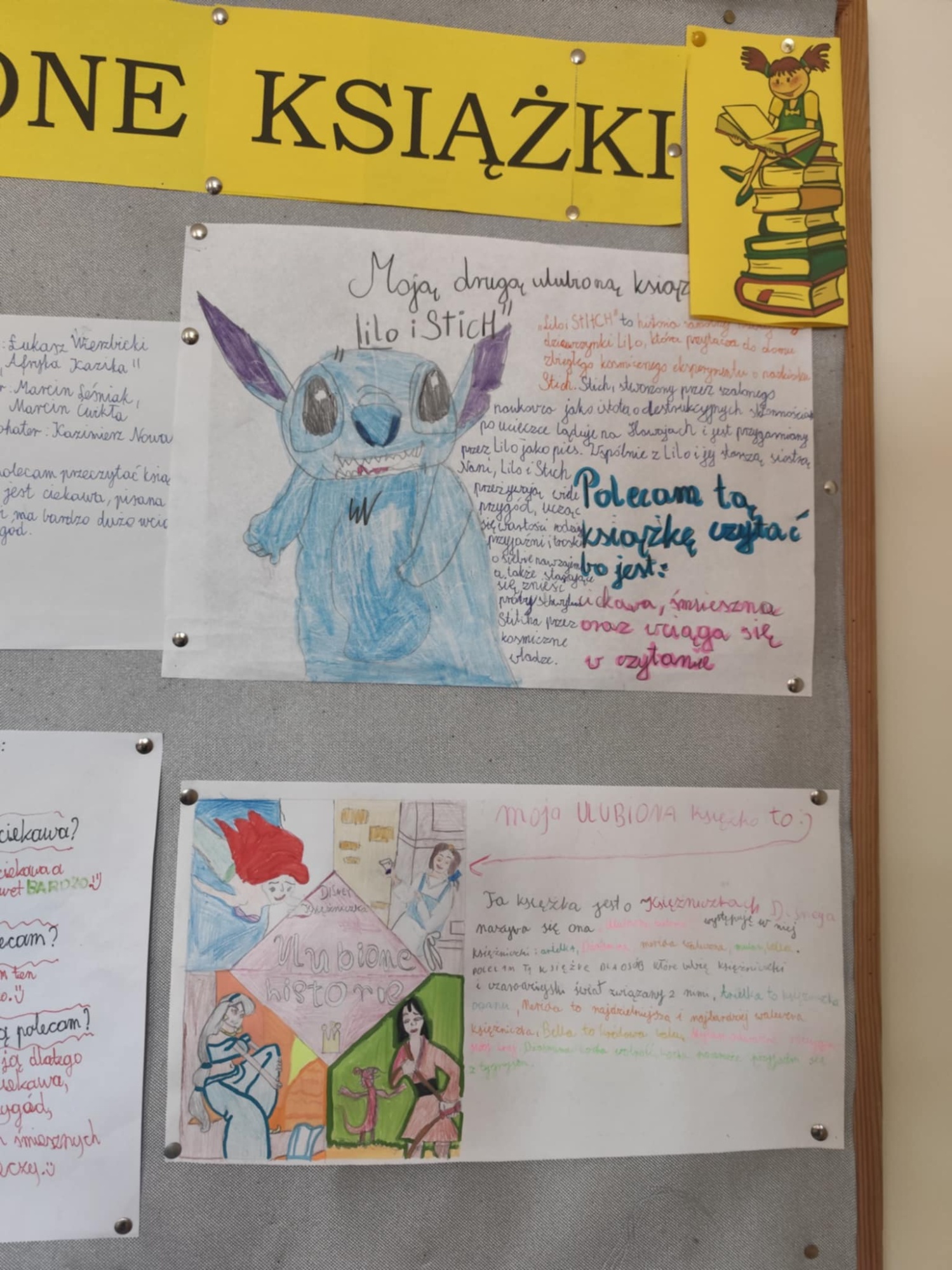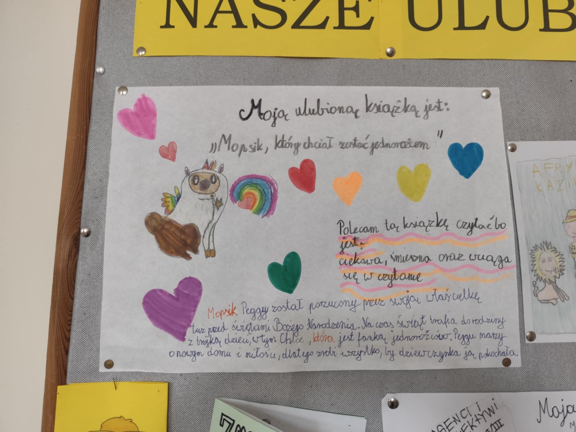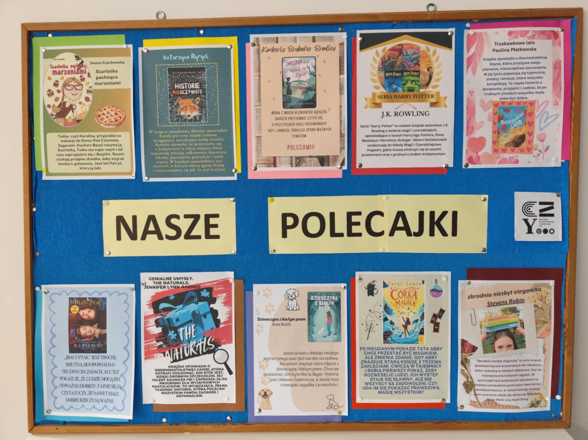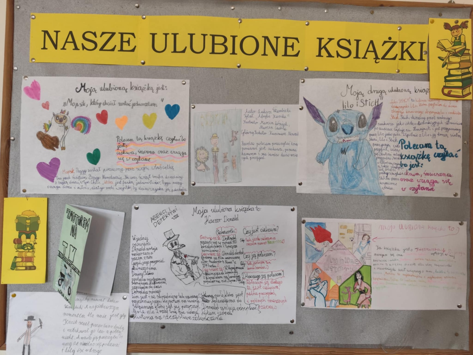 Spośród 45 przygotowanych prac wybrano te najbardziej pomysłowe i dopracowane, które można podziwiać na szkolnej tablicy „NASZE POLECAJKI”. To właśnie one prezentują książki zakupione w ramach NPRCz – historie, które na długo zostają w pamięci.